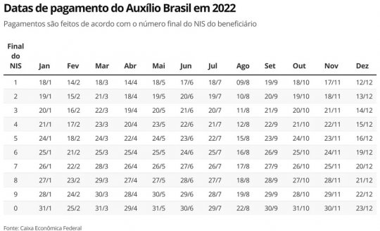 O governo antecipou, de 9 a 11 dias, a depender do final do Número de Identificação Social (NIS), o calendário de pagamento do Auxílio Brasil no mês de agosto. A mudança foi determinada em instrução normativa publicada no "Diário Oficial da União" desta segunda-feira (25).