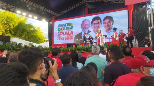 O pré-candidato a presidente Luís Inácio Lula da Silva subiu ao palco de mãos dadas com os candidatos Rafael Fonteles, Wellington Dias e a governadora Regina Sousa. Acompanhado da mulher Janja, ele saudou a multidão presente. O ato começou com a execução do Hino Nacional Brasileiro pela Orquestra Sanfônica de Teresina.