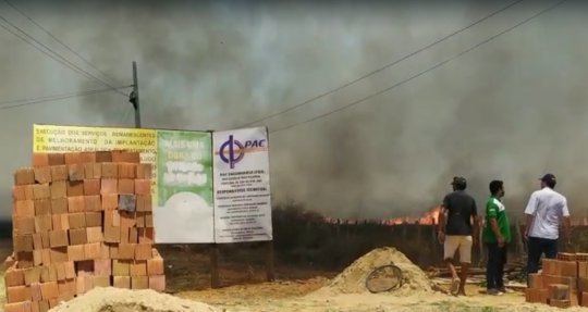 Um incêndio de grandes proporções está consumindo a vegetação seca em uma área próxima a residências nas proximidades do Residencial Lila, entre os bairros Parque Estrela e Cidade Nova, de ambos os lados da PI-215, que liga Campo Maior à Coivaras.