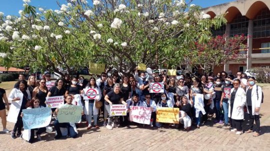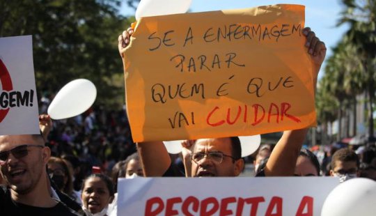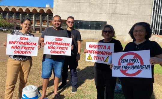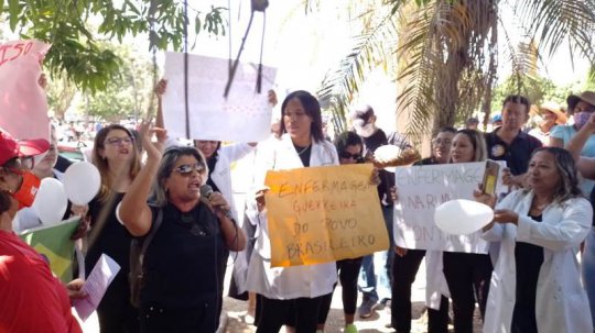 Enfermeiros e estudantes de Enfermagem protestaram nesta quarta-feira, durante as comemorações do 7 de setembro em Teresina-PI, contra a liminar do ministro do Supremo Tribunal Federal, Luís Roberto Barroso, que suspendeu o piso salarial de enfermagem