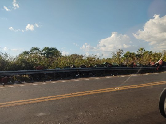 Um caminhão modelo Scania 360, placa SBK-2B31, tombou na madrugada deste domingo (18/09) no KM-290 da BR-343 entre as cidades de Campo Maior e Altos (PI). O veículo estava carregado de frutas e hortaliças e havia saído de Tianguá-CE.