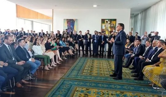 Ministros e a primeira-dama, Michelle Bolsonaro, que discursou no evento, também participaram da reunião.