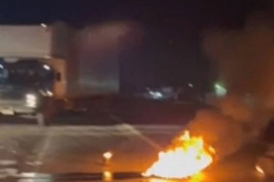 Manifestantes queimaram pneus e bloquearam a BR-020 com caminhões em Luís Eduardo Magalhães, oeste da Bahia, na noite deste domingo (30), após a vitória de Luiz Inácio Lula da Silva (PT) para a Presidência.