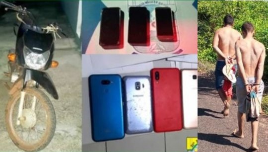 Após longo trajeto, os suspeitos perderam o controle e caíram da moto, entrando na mata e abandonando no local os aparelhos celulares e a moto.