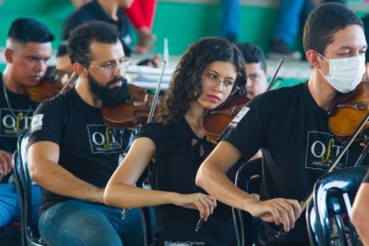 A Orquestra Sinfônica de Teresina (OST) realizou nesta quarta-feira (23) um Concerto Musical no campus do IFPI em Campo Maior (PI). A apresentação faz parte da temporada 2022 que leva a música clássica para a população. Durante as apresentações os alunos podem interagir com o maestro e os músicos, além de apreciar ao vivo um repertório que vai do erudito ao popular.