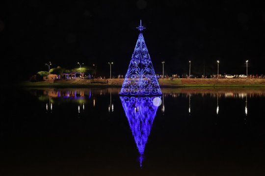 A contagem regressiva feita pelo vereador Jaifran do Povão, marcou o grande momento em que a árvore com 17 metros de altura totalmente flutuante, recebeu a tão esperada iluminação com tons de azul, em um formato que remetem a Nossa Senhora Aparecida.