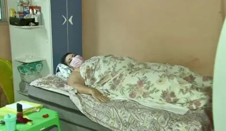 A rotina é a mesma há quase 20 dias. Deitada sobre uma cama por não conseguir andar, ela conta com a ajuda de vizinhos e conhecidos tanto para cuidar do filho dela como para auxiliá-la na higiene pessoal.