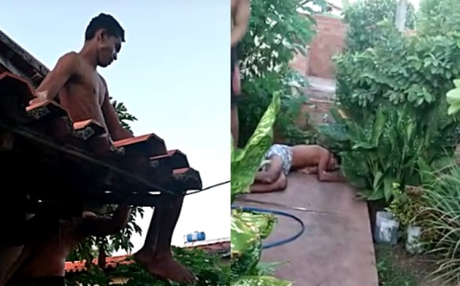 Ao amanhecer o dia, a dona de casa se deparou com o indivíduo dormindo no seu telhado. Ao ser acordado por um vizinho, o suspeito despencou de cima do telhado e sofreu uma violenta queda, ficando desacordado.