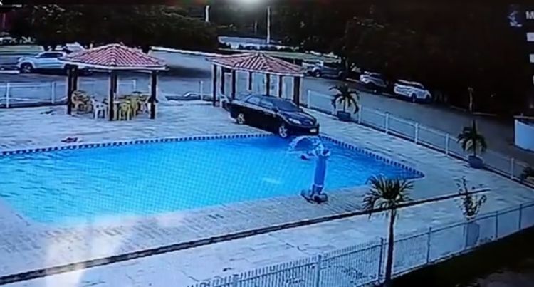Um incidente, na tarde deste sábado (3), na cidade de Cristino Castro, sul do Piauí, por pouco não terminou de forma mais grave. Um carro de passeio, modelo Corolla, invadiu a piscina de um hotel e quase atingiu duas pessoas que estavam banhando. Toda a ação foi registrada por uma câmera de segurança.