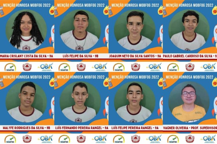 Parabéns Luís Felipe Pereira Rangel (9A); Maria Crislany Costa da Silva (9A); Paulo Gabriel Cardoso da Silva (9A); Joaquim Gabriel da Silva Santos (9A); Luís Fernando Pereira Rangel (9A); Luís Felipe da Silva (9B) e Walyfe Rodrigues da Silva (9B) e ao professor Vagner de Oliveira por todo incentivo.