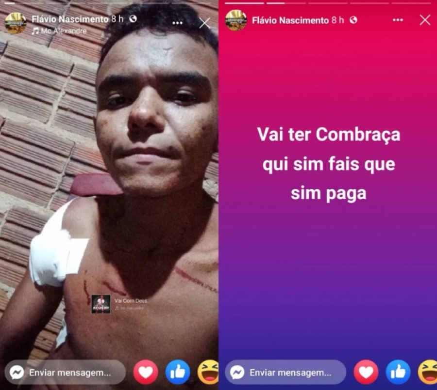 Após sofrer uma tentativa de homicídio na noite do último domingo (18), no bairro Mutirão, em Castelo do Piauí, o jovem Flávio do Nascimento Ribeiro, vulgo Flavinho, de 24 anos, fez ameaças nas redes sociais.