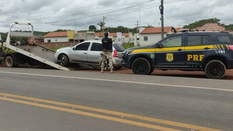 A equipe realizava fiscalização na rodovia, na manhã de sexta(23), quando avistou um veículo estacionado em frente a uma residência com a placa traseira violada/não lacrada. Fato que motivou uma verificação mais detalhada do automóvel.