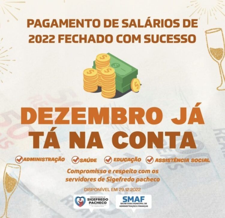 A prefeitura municipal de Sigefredo Pacheco (PI) encerra o ano com os salários dos servidores e todos os direitos pagos neste final de ano. O pagamento foi concluído nesta quinta-feira (29).
