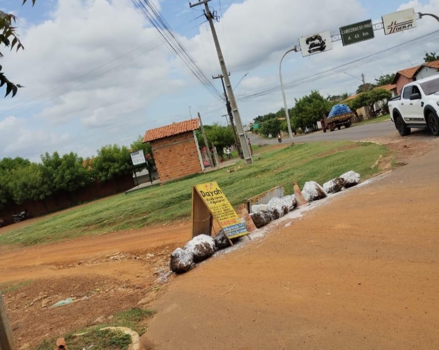 Os moradores do bairro Santa Rita em Campo Maior (PI) interditaram a rua com pedras e placas em protesto para que as autoridades possam trazer obras de calçamento para os moradores.
