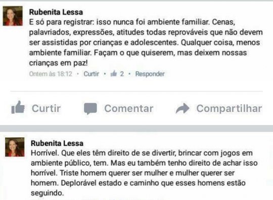 A discussão é muito relativa! Uns defendem a advogada pela sua liberdade de expressão e outros defendem os LGBT’s, que se sentiram discriminados pelos comentários de Rubenita. Mas afirmo duas coisas, é preciso que se vejam as atitudes dos dois lados, e, é dever do Direito intermediar a conversa e não deixar que os exageros das duas partes discriminem um ao outro.
