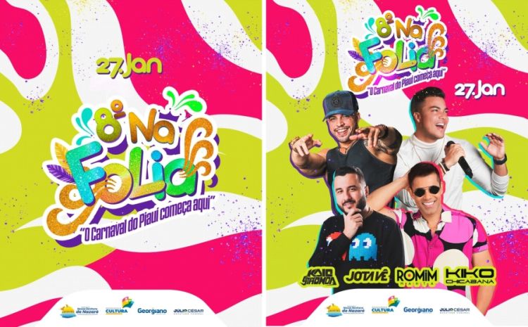 A prefeitura de Nossa Senhora de Nazaré divulgou oficialmente nesta segunda-feira, 09/01, as atrações da 8ª edição do Na Folia, tradicional carnaval fora de época realizado no município. O evento deste ano acontecerá no dia 27 de janeiro.