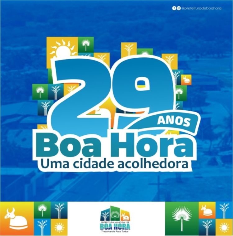 O município de Boa Hora completa 29 anos de Emancipação Política no próximo dia 26 de janeiro. Para marcar a data, a Prefeitura Municipal preparou uma programação especial de aniversário, contemplando inaugurações de obras, entrega de equipamento e ordem de novos serviços para população.