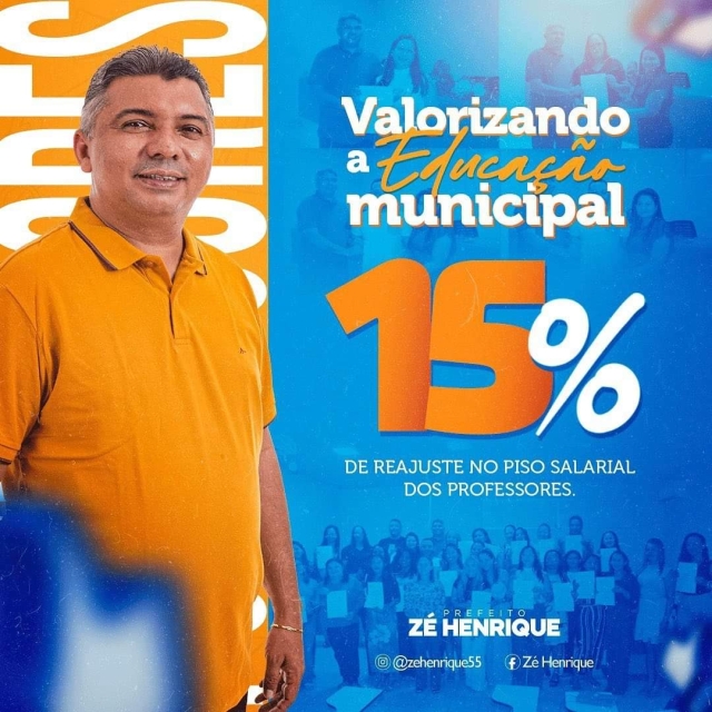 "Como prefeito e como professor, digo com sinceridade que é um prazer fazer o reajuste do pagamento dos professores municipais conforme o piso nacional. Para quem não vive a experiência do magistério, dificilmente compreenderá em sua totalidade a necessidade da valorização e do apoio aos nossos queridos professores e professoras", disse Zé Henrique.