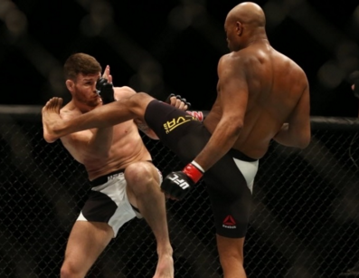 Contra Bisping, Anderson fez uma luta recheada com fintas, esquivas e brincadeiras, mas não teve sucesso no ataque. No fim, os jurados laterais marcaram um triplo 48-47 para o inglês.