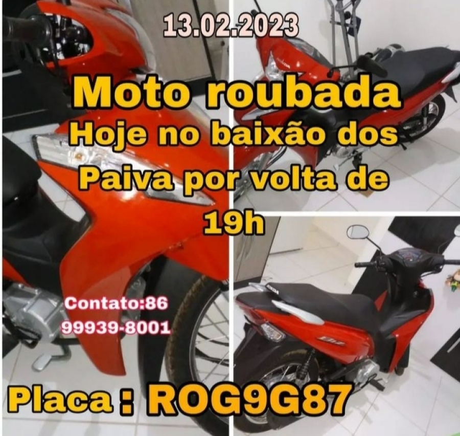 Uma moto foi roubada por dois criminosos armados durante um assalto no dia 13 de fevereiro no bairro Baixão dos Paivas em Altos (PI).