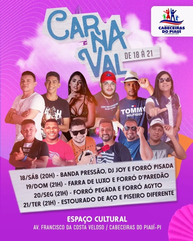 A Prefeitura de Cabeceiras do Piauí irá realizar o Carnaval 2023. Para a grande festa que terá duração de quatro dias, a programação inicia neste sábado (18) com as seguintes atrações: