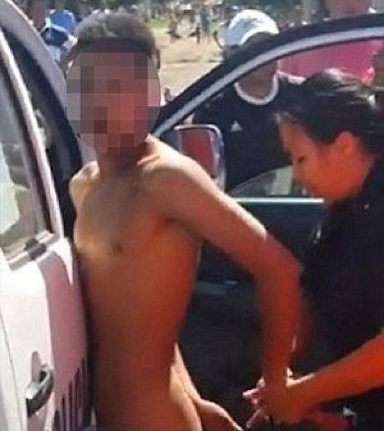 Já no camburão, uma policial tirou as cordas de seus braços, o algemou ainda nu, enquanto as pessoas se reuniam em volta dele, insultando-o. Um morador do bairro até mesmo o ameaçou de morte: