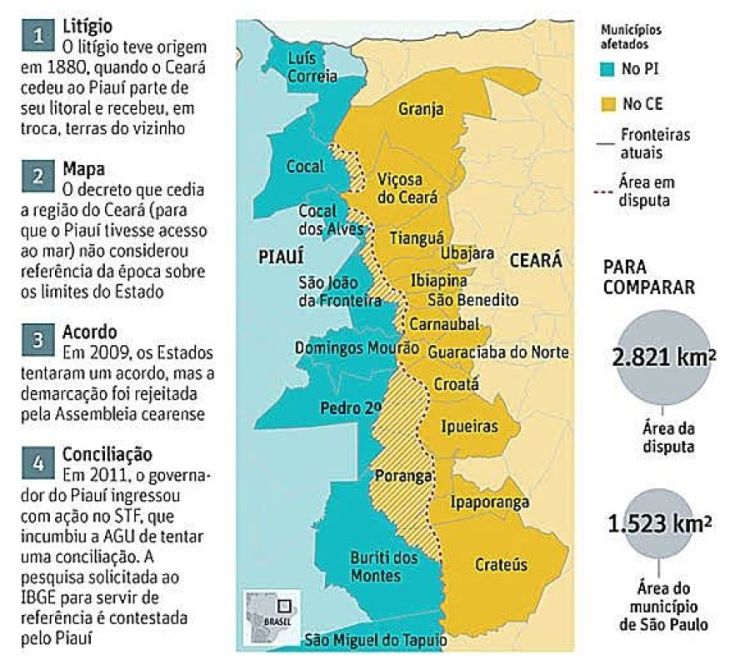 Nesta quinta-feira (9), o governador Elmano de Freitas assinou o decreto que autoriza a criação do Grupo de Trabalho para acompanhamento da disputa territorial entre Ceará e Piauí. Em trâmite no Supremo Tribunal Federal (STF), a ação cível originária que trata do litígio (ACO 1831/PI) foi movida pelo Estado do Piauí em 2011 e disputa parte dos territórios de 13 municípios cearenses: Granja, Viçosa do Ceará, Tianguá, Ubajara, Ibiapina, São Benedito, Carnaubal, Guaraciaba do Norte, Croatá, Ipueiras, Poranga, Ipaporanga e Crateús, abrangendo mais de 245 mil cearenses.