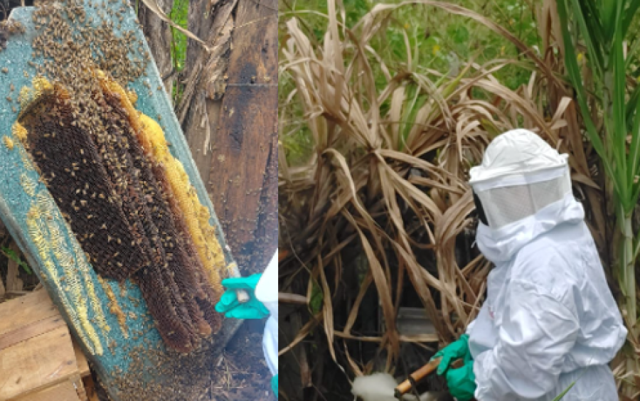 Após serem acionados, os criadores fizeram o resgate do enxame. As abelhas foram levadas para a propriedade do casal na comunidade.