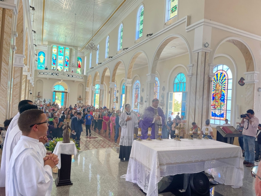 Lotado de autoridades, a celebração foi presidida pelo Bispo Diocesano, Dom Francisco de Assis. O governador Rafael conduziu a imagem de Santo Antônio, padroeiro da cidade até o altar.