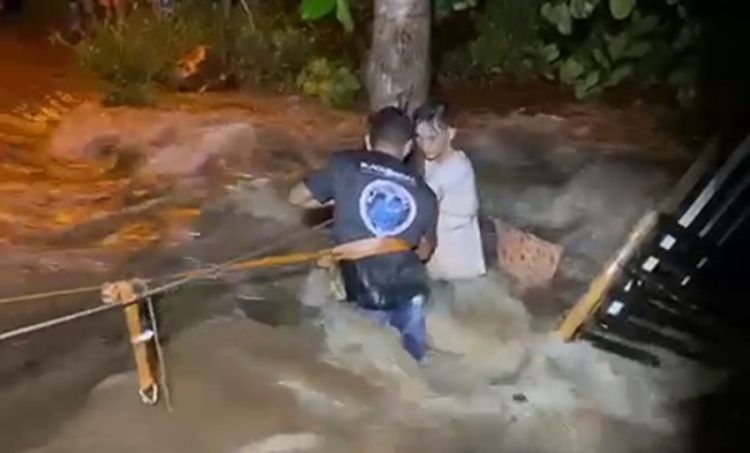 A força da água foi tão intensa que acabou levando dois motociclistas que tentavam atravessar o Rio Corrente, próximo à Rodoviária na Rua Auto Freire.