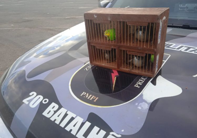 A prisão ocorreu após o carro modelo “HB20”, veículo que o suspeito estava, passar por uma abordagem policial. A guarnição, ao realizar uma vistoria na área interna do veículo, constatou a presença de uma gaiola contendo quatro pássaros, sendo três trinca-ferros e um periquito-australiano.