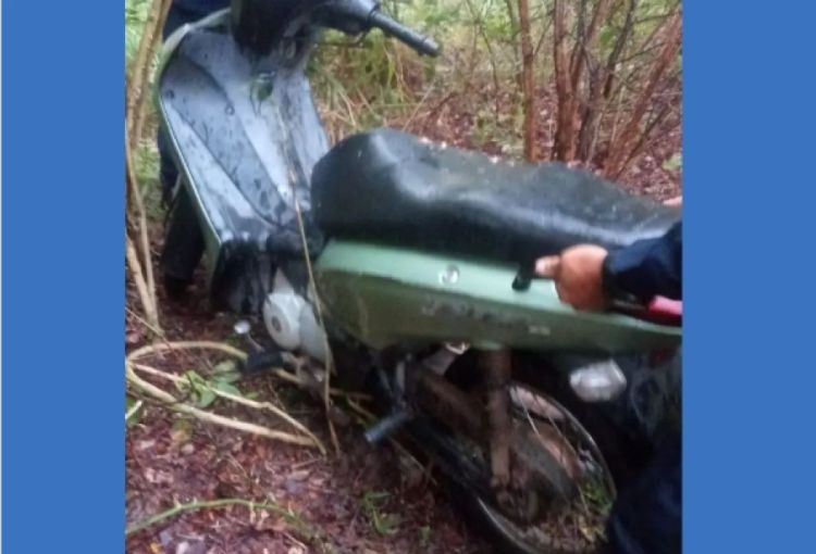 Ao fazer o patrulhamento preventivo em Altos (PI), a Guarda Municipal avistou dois individuos próximos a um matagal em atitude suspeita. Ao aproximar-se do local encontraram a moto HONDA/BIS 125KS furtada.