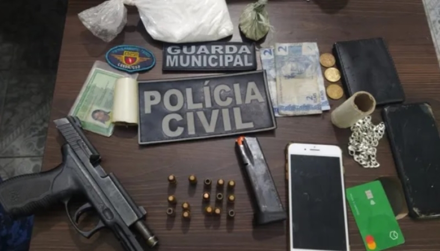 O foragido teve o mandado de prisão cumprido e também foi autuado por porte ilegal de arma de fogo.