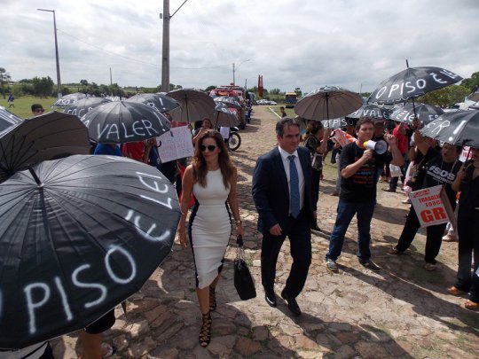 Os professores acompanharam de perto a visita das autoridades ao cemitério dos Heróis do Jenipapo. “Professores na rua, governo a culpa é sua”, cantavam. Contra a Secretária de Educação, Rejane Dias, as criticas eram mais acaloradas: “Ô Rejane, preste atenção, ou paga o piso ou deixa a educação”.
