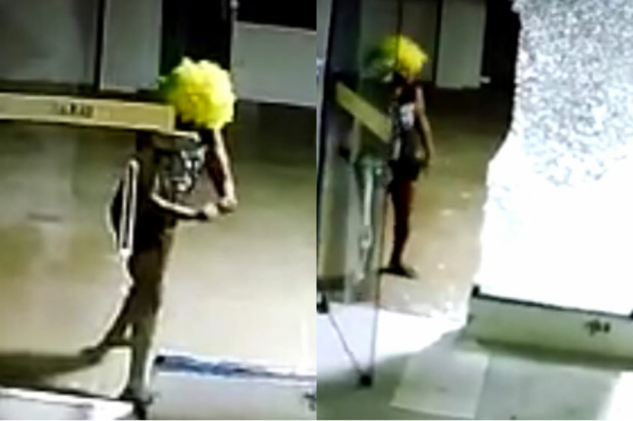 Câmeras de segurança flagraram uma mulher, não identificada, usando uma peruca de palhaço amarela como disfarce para invadir e furtar mercadorias de uma loja de roupas, no Shopping José Paulino, no centro de Campo Maior (PI) na madrugada de terça-feira (18).