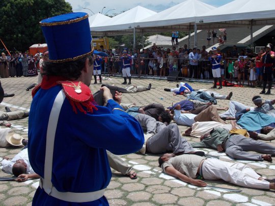 O grande público da solenidade, no entanto, ficou mesmo por conta de turistas e estudantes, que aproveitaram a data para visitar o Museu do Couro, o Cemitério dos Heróis e acompanhar a encenação do confronto no espetáculo teatral que esse ano contou com a participação do ator nacional Carlos Casagrande interpretando o major português João José da Cunha Fidié.