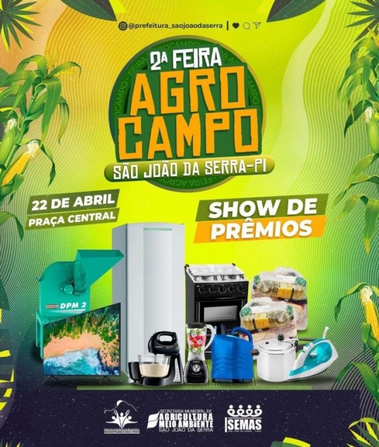 A Feira do Pequeno Produtor - Agrocampo será realizada neste sábado (22) no município de São João da Serra (PI) e promete mostrar o que há de melhor no ramo da produção agrícola. Na ocasião, vários produtores da zona urbana e rural vão comercializar os seus produtos.