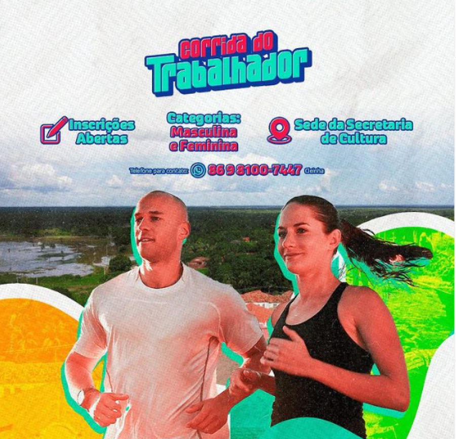 A prefeitura de Nossa Senhora de Nazaré (PI) por meio da secretaria de cultura, convida a todos os esportistas e corredores, homens e mulheres, para participar da Corrida do Trabalhador.