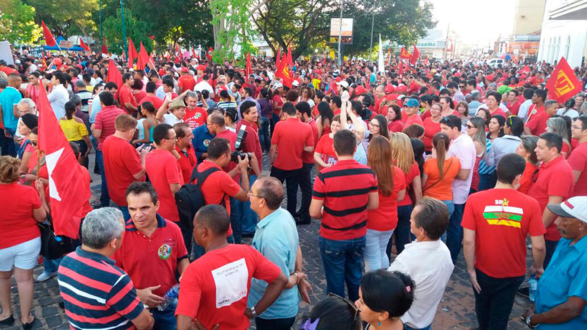 Cerca de seis mil pessoas estão concentradas na Praça da Bandeira nesta sexta-feira (18), segundo estimativa dos organizadores do ato a favor de Dilma e de Lula. Caravanas de mais de 30 cidades participam da manifestação, que acontece também em outros lugares do Brasil.