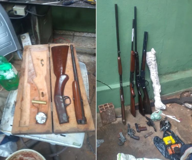 Segundo a investigação da Polícia Civil, os criminosos fabricavam e faziam a manutenção de armas de fogo. Os policiais encontraram peças de armas como revólveres e fuzis, e as ferramentas para montá-los.