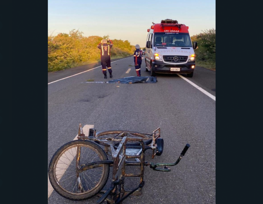 Um ciclista de 25 anos morreu após ser atropelado por um carro enquanto estava trafegando em uma bicicleta cargueira na rodovia PI-477, no povoado Perua, no município de Pedro II (PI).