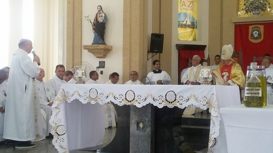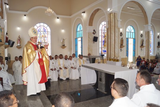 No final da Celebração Eucarística da benção dos Santos Óleos, o Padre Juscelino, representando todo o clero da Diocese de Campo Maior, agradeceu a Dom Eduardo Zielski pelos 16 anos em que esteve à frente da Diocese de Campo Maior.