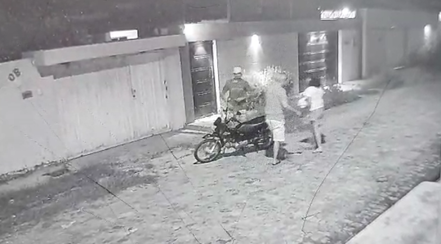 No vídeo, o casal chega de moto até uma residência para realizar uma entrega. No trajeto, eles cruzam com um homem que estava a pé indo em direção oposta.