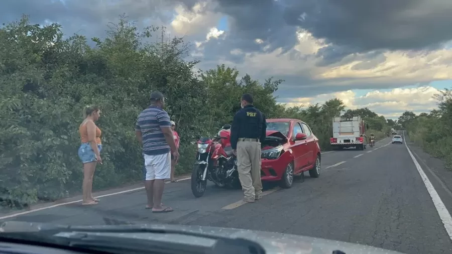 A colisão entre uma motocicleta e um carro de passeio aconteceu há cerca de cinco quilômetros da entrada para a rodovia estadual que dá acesso a Pedro II.