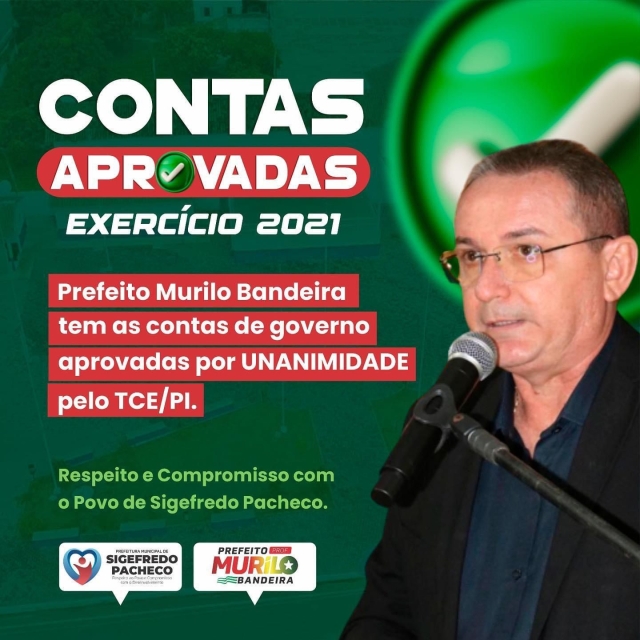 “É com a sensação do dever cumprido que recebo do Tribunal de Contas do Estado TCE-PI a aprovação por unanimidade das nossas contas de governo ano 2021, isto reflete no compromisso, no zelo e na dedicação que temos não só em governar, mas acima de tudo de fazer a coisa certa, de cumprir com nossa obrigação enquanto gestor. Avante sempre! Respeitar os princípios administrativos será sempre o nosso objetivo, a nossa determinação. Vamos continuar cuidando e zelando por nossa Sigefredo Pacheco. Estendo aqui os agradecimentos a toda a equipe de secretários e assessores que fazem junto conosco esta gestão.” Comemorou o prefeito.
