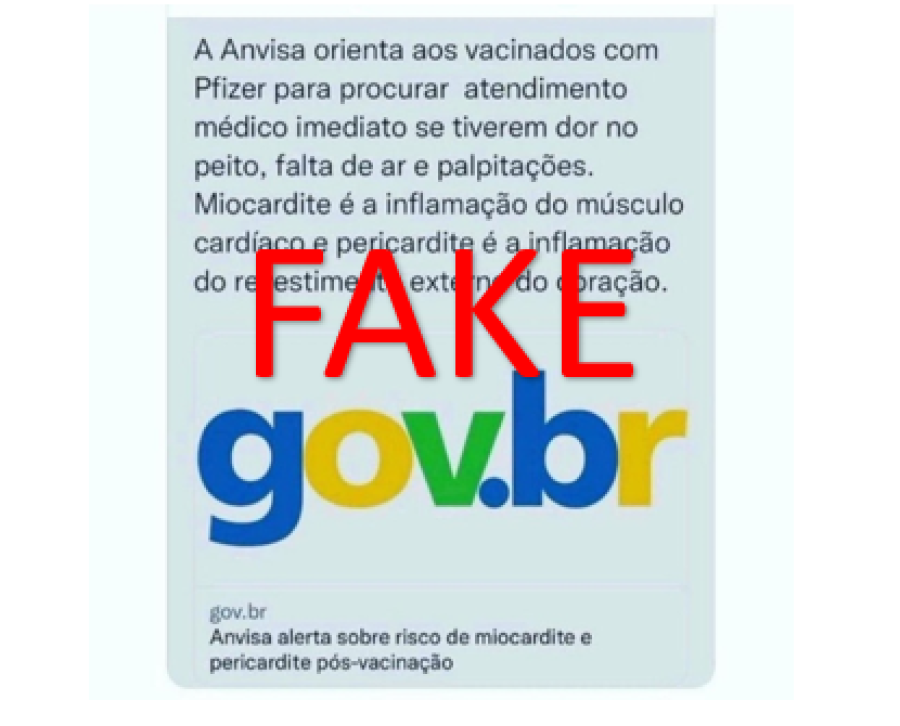 Não é recente a nota publicada pela Anvisa com alerta sobre risco de miocardite e pericardite pós-vacinação com imunizantes da Pfizer, como fazem crer postagens que circulam nas redes sociais.