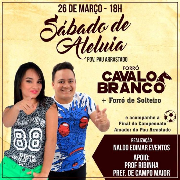 18h - música ao vivo com Forró Cavalo Branco e Forró de Solteiro