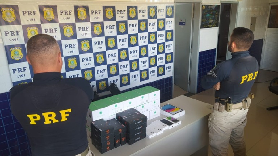 No ônibus, os policiais encontraram um carregamento ilegal de produtos eletrônicos avaliado em aproximadamente R$ 32.000,00 mil reais.