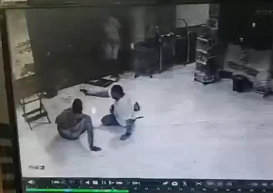 Um vídeo registrado por uma câmera de segurança do local mostra o interior da loja. O tiroteio começa do lado de fora do estabelecimento, e três pessoas pulam para dentro, para se refugiar dos tiros.
