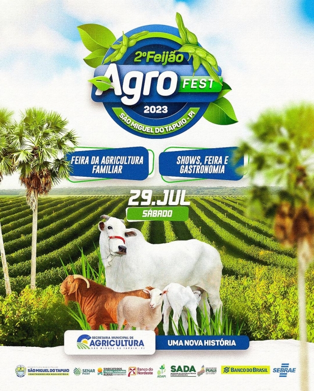 A Prefeitura de São Miguel do Tapuio (PI), juntamente com a Secretaria de Agricultura, irão realizar a 2ª edição do "Feijão Agro Fest". O evento acontecerá no dia 29 de julho, das 06h às 00h na Praça Matriz Coronel Manoel Evaristo de Paiva.